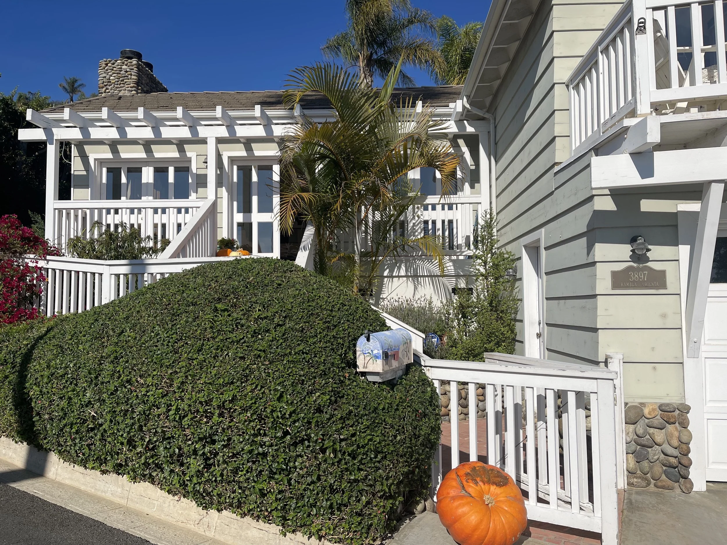 Charming Cape-Cod styled home in the La Costa Hills. 2 bed, 2 bath plus den that opens out to a beautiful outdoor deck overlooking the ocean. Laundry room conveniently located between the bedrooms, as well as a 2 car garage. Boasts gorgeous, breathtaking Queen's Necklace ocean views from living room and den. Features hardwood floors, high ceilings, and an outdoor entertaining area with hot tub in a delightful and comfortable beach setting. This house takes pride in its simple symmetrical design that encompasses chic and beachy. Available June 15th, 2023.